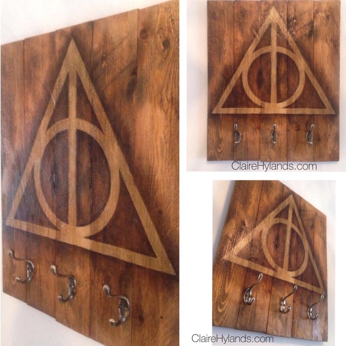Harry Potter Themed Coat Rack – Deathly Hallows 20 Mar 201517 Apr 2015 by Claire Hylands, posted in Uncategorized I always wanted to give something like this a go, and there was some off cuts in the garage. So here it is.